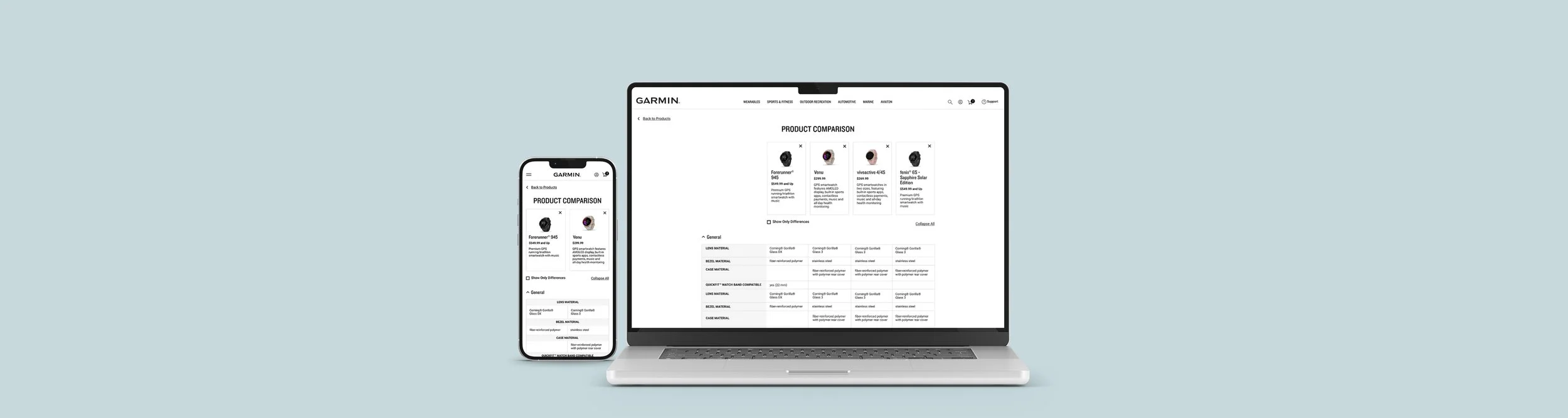 Garmin.com eCommerce B2C Compare Feature